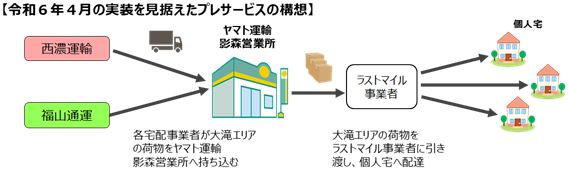 (3)2号車は、ヤマト運輸影森営業所にて、福山通運、西濃運輸の荷物を積み込み、大滝地域へ配達します。