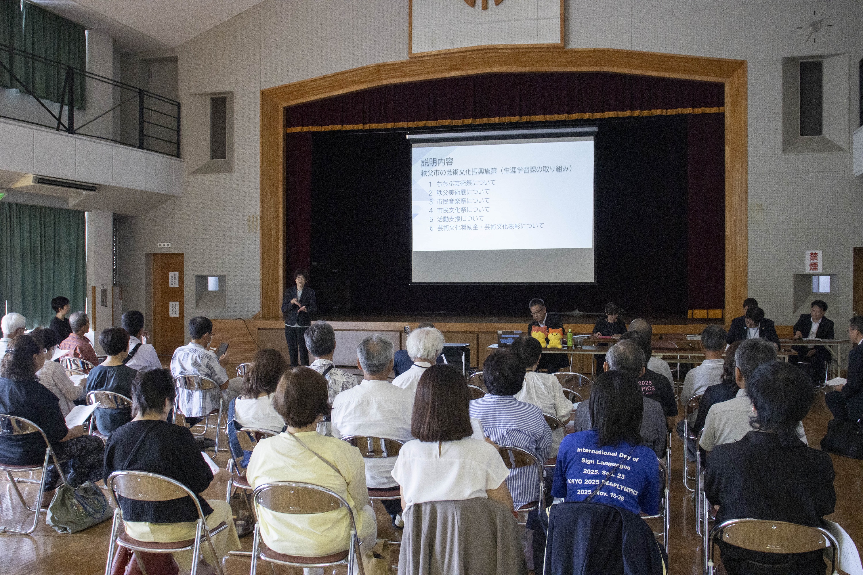 具体的な質問や意見も多く寄せられました。たとえば、若いイラストレーターやアーティストの活動の場を提供することや、販売会の開催を希望される声がありました。これらの提案は非常に重要であり、市としても可能な限りサポートを行っていきたいと考えています。また、秩父の誇る芸術や文化のアピール不足が課題であるとの意見もいただきました。秩父地域が誇る豊かな自然や文化を、芸術の視点から内外に発信することで、さらに多くの人々に秩父の魅力を知っていただけると信じています。さらに、観光客がふらっと立ち寄れる共創スペースを既存の施設の一画に設ける提案もありました。今後は、地域の表現者の声を反映させた条例・計画の策定を通じ、創作活動を支える受け皿づくりを実現していきます。皆さまのご協力とアイデアを力に、秩父の芸術文化を一層豊かにしてまいります。