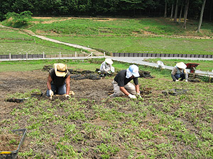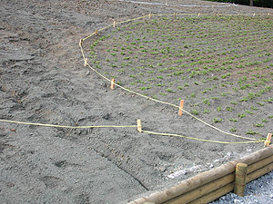 土壌改良を行った場所には、次の春、皆さんに「芝桜の丘」の新しい一面をご覧いただくため、基本のデザインをふまえながらデザインの修正を行います。 |