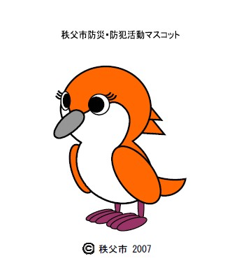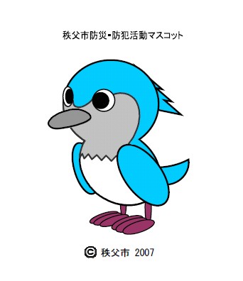 「秩父市防災・防犯活動マスコット」は、秩父市の鳥である「オオルリ」をモチーフにし、親しみ易いデザインとしてあります。