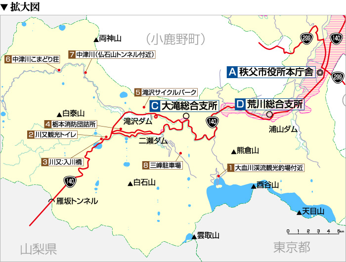 本庁舎および吉田・大滝・荒川総合支所における測定結果